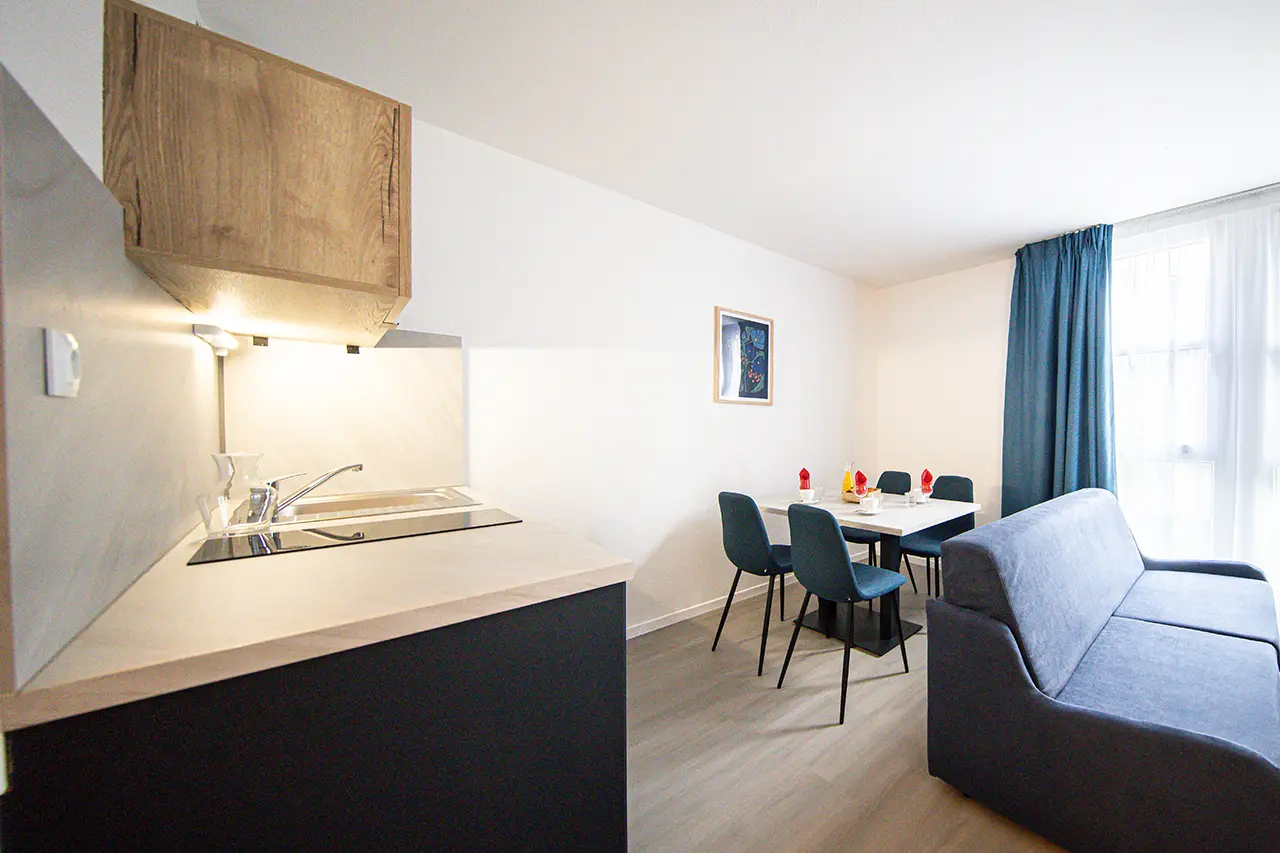Tous nos appartements sont équipés d'un coin cuisine afin de vous permettre de cuisiner comme à la maison !